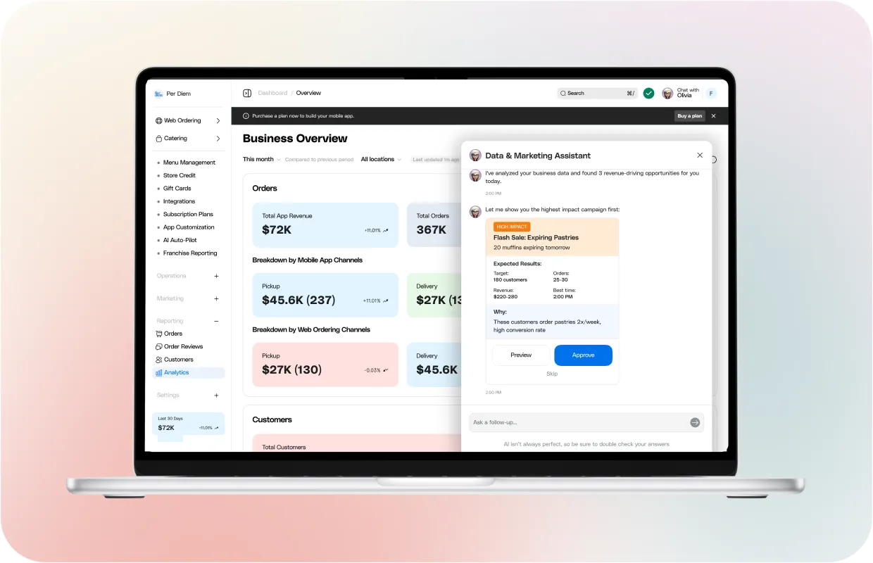 The reports from your POS and Olivia in Per Diem will guide you toward what deserves more attention. If customers love a certain drink or dish, give it a place that respects that momentum. If something is slowing down, refresh the wording or pair it with an upsell that fits naturally. Customers respond to clarity and simple paths. When their choices feel effortless, they complete more orders with fewer second guesses.