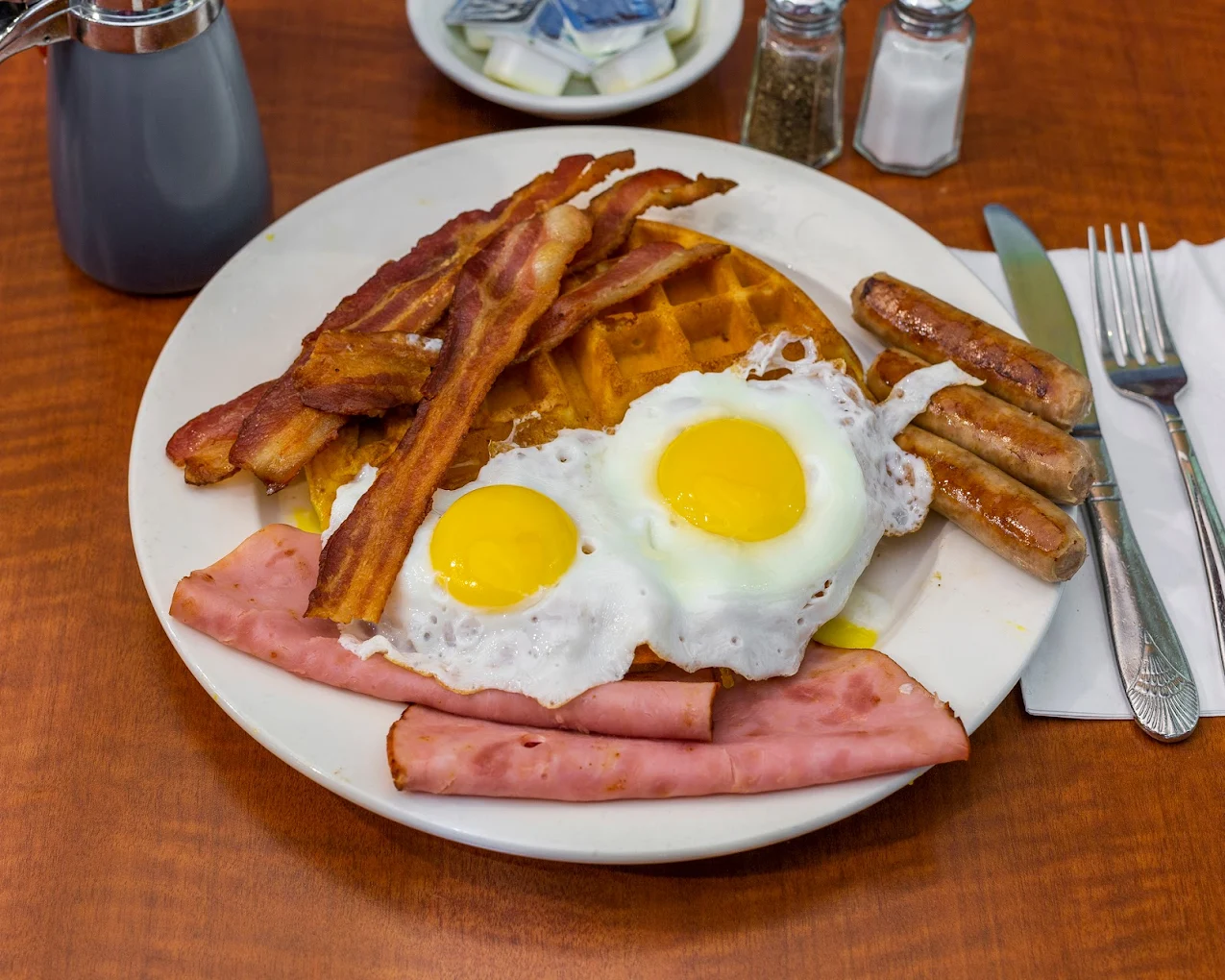 New York Luncheonette delivers a classic diner-style waffle that feels familiar and comforting. The batter cooks into a lightly crisp texture that absorbs syrup without getting soggy and pairs perfectly with eggs, bacon, or fruit. The service is quick and warm, which keeps the energy upbeat even during busy mornings. The space fits the definition of a classic breakfast stop: bustling counters, fast-moving staff, and plates that arrive exactly as expected.