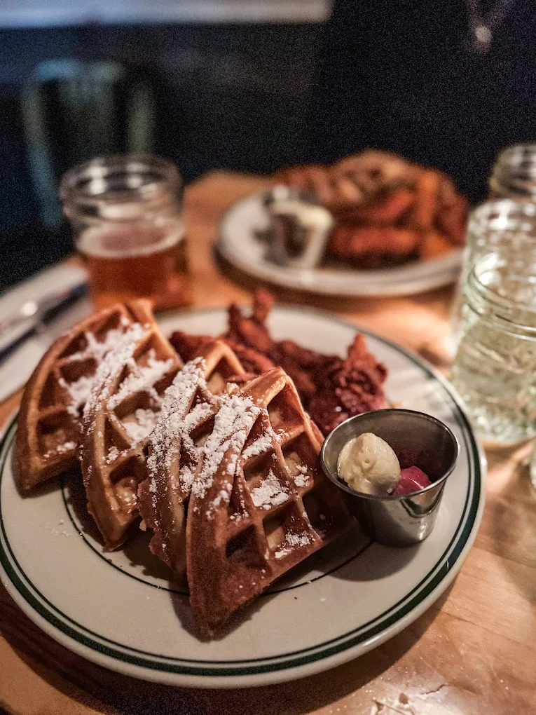 Sweet Chick blends Southern comfort food with New York energy and its waffles reflect that mix. The dough is tender with a slightly crisp edge, and toppings range from simple butter and syrup to full chicken and waffle plates. The dining room plays lively music which sets a fun and relaxed mood. Cocktails, savory dishes, and vegetarian options round out the menu which makes this place an easy group pick.