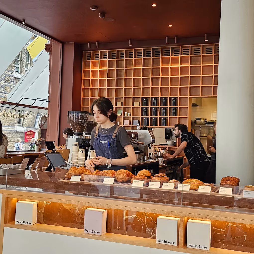 WatchHouse is in the heart of the action yet manages to feel relaxed. Their coffee is smooth, rich, and expertly brewed. They offer both pastries and savoury breakfast items. The modern interior is bright and comfortable, and there's room outside to take in the piazza atmosphere. Whether you're inside to think or outside to watch the crowds, WatchHouse gives a moment of clarity in a hectic place.
