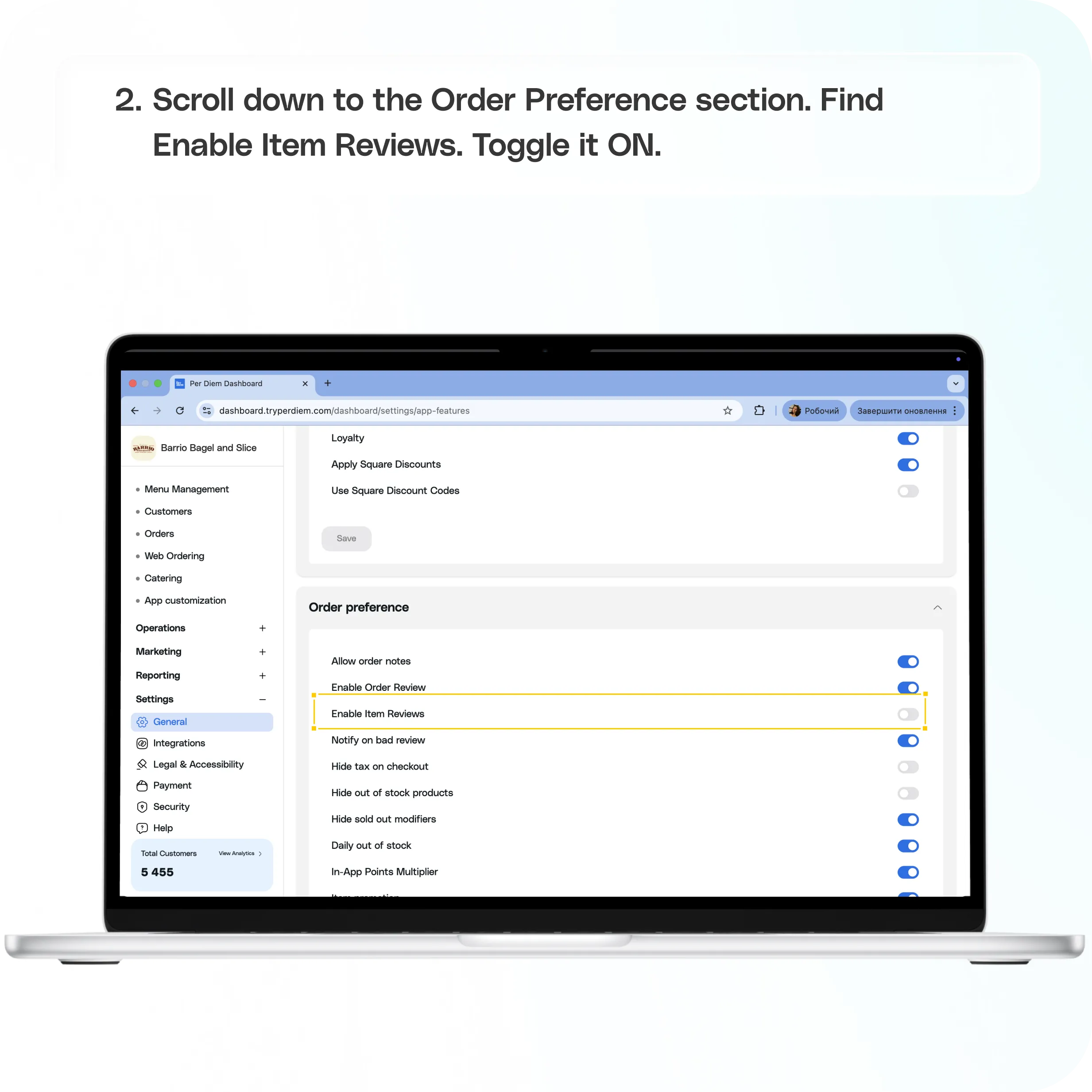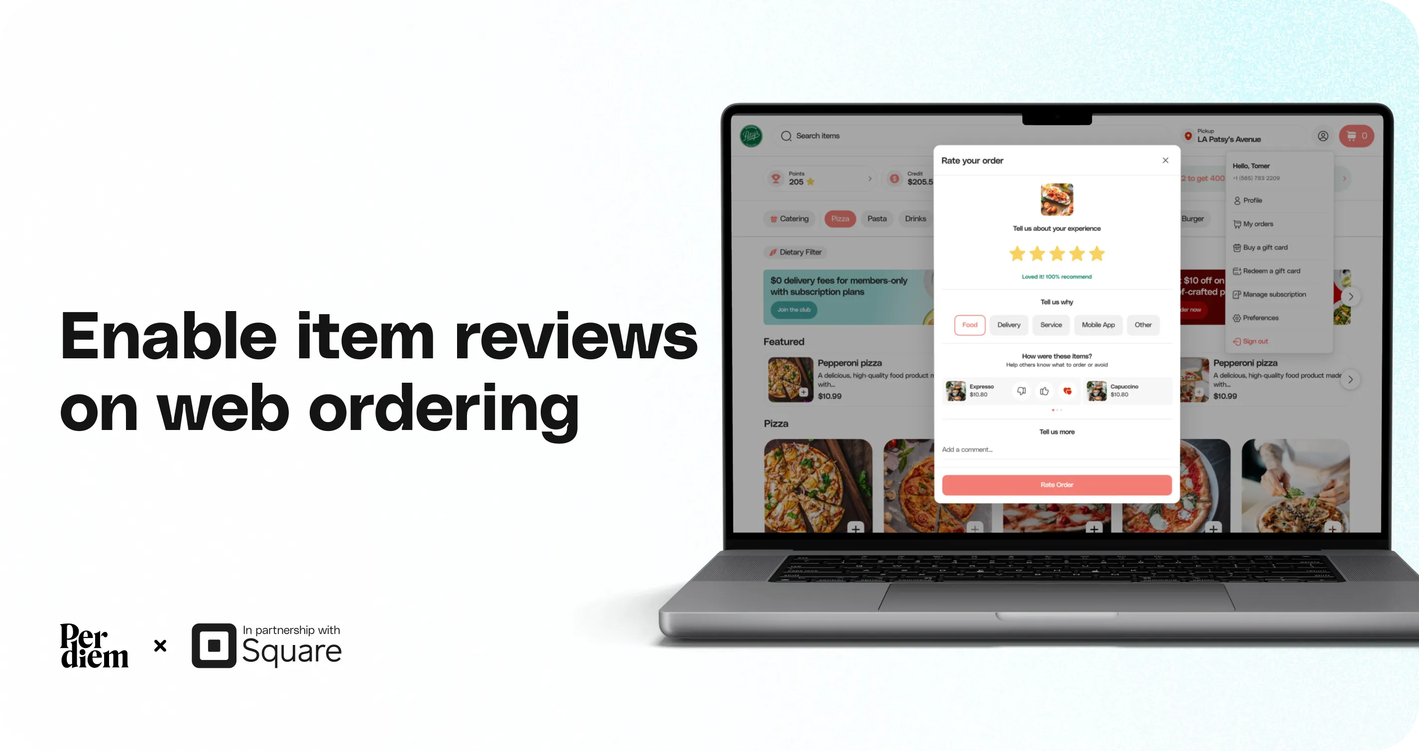 Once enabled, customers placing orders through your web ordering experience will be able to rate and review individual items.