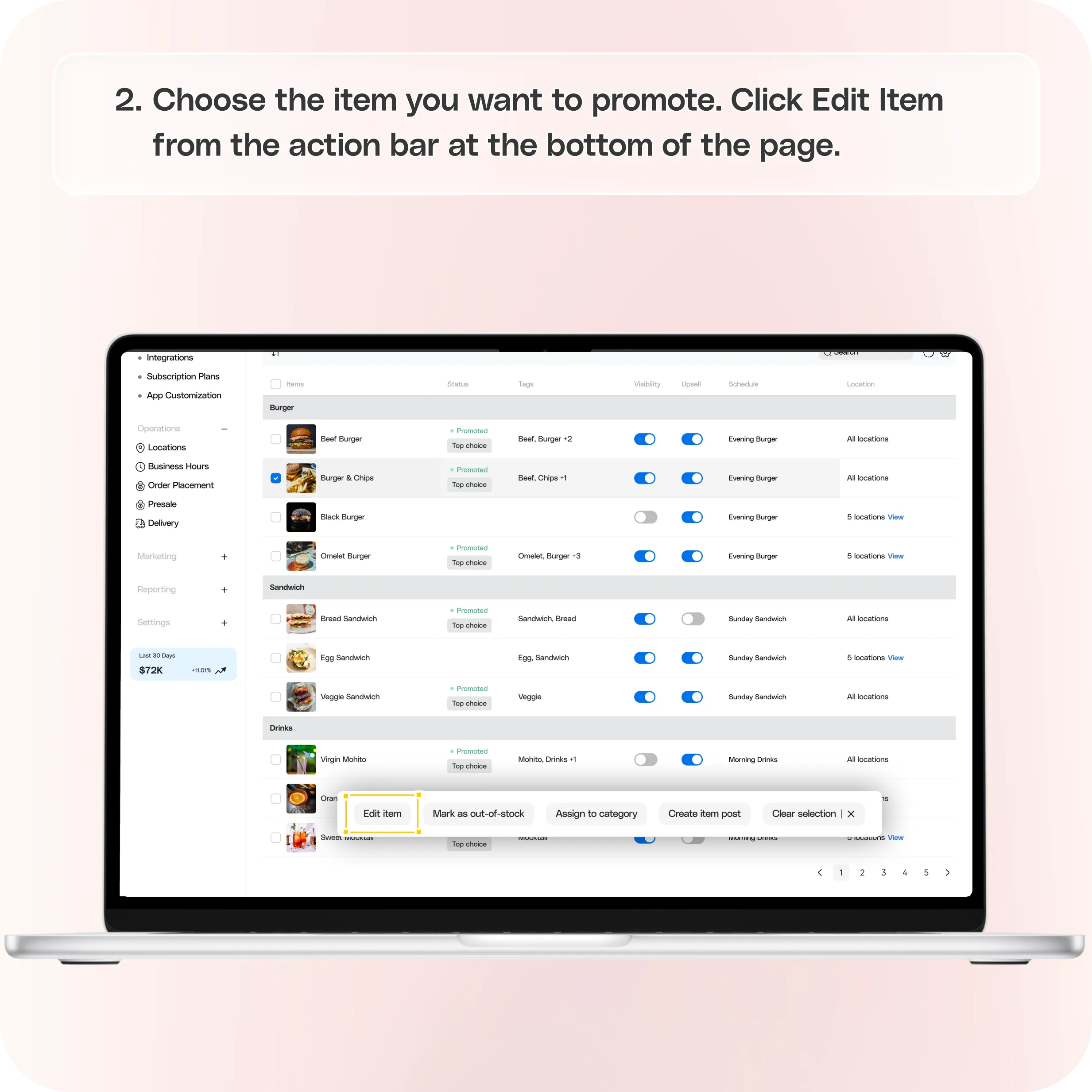 Choose the item you want to promote. Click Edit Item from the action bar at the bottom of the page.