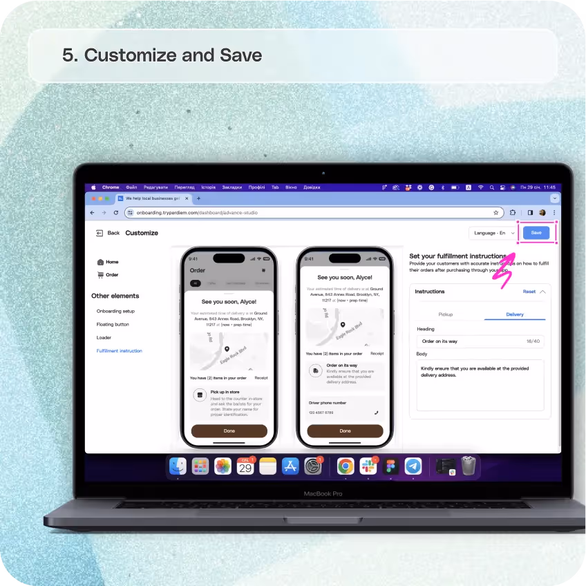 After customizing instructions for both pickup and delivery, hit "Save" on the top right.