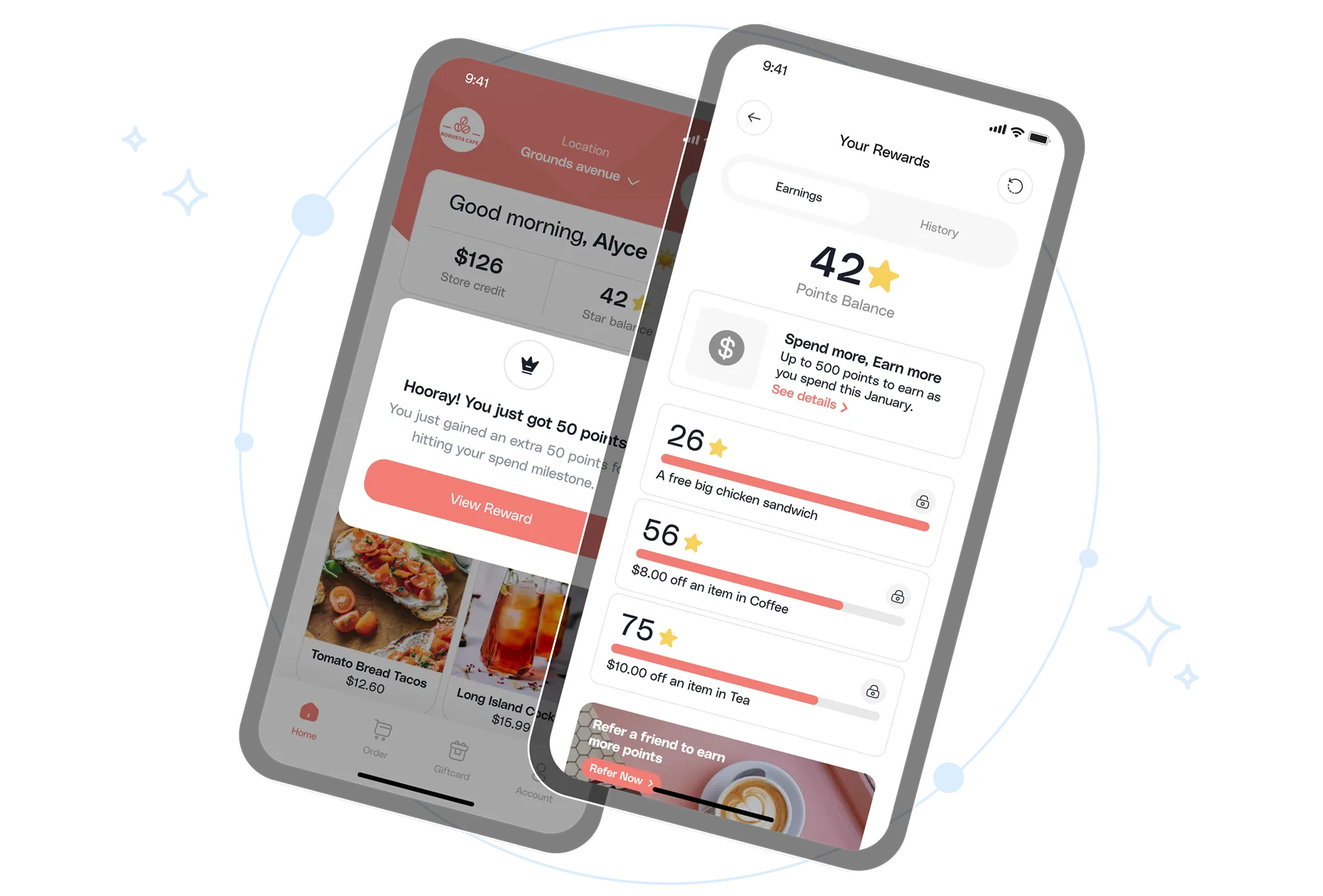 Offer unlimited incentives for existing customers to spread the word about the app, and witness your restaurant or coffee shop become the talk of the town: more guests, more orders, more sales—less effort.