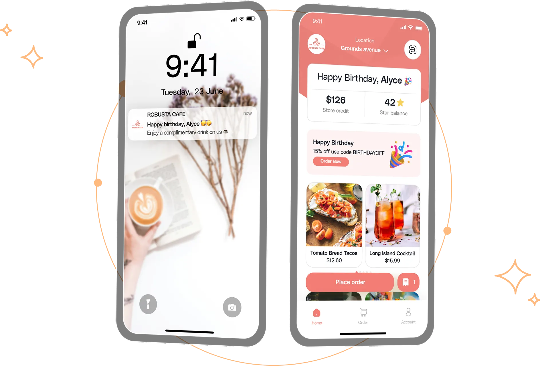 Keep your app lively with scrollable, tappable content that showcases what’s new—from menu drops to events and beyond.