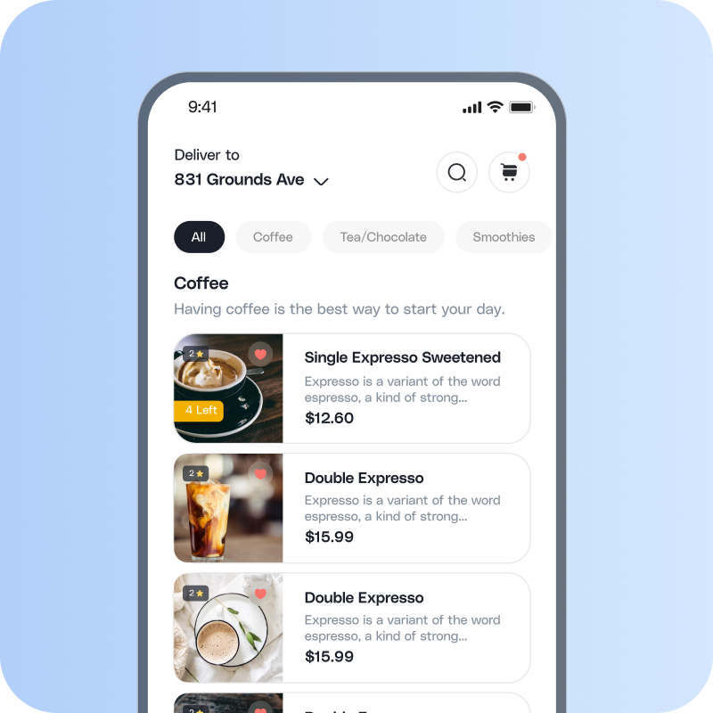Showcase your menu's tempting offerings with captivating custom images, compelling customers to explore and order through your app.
