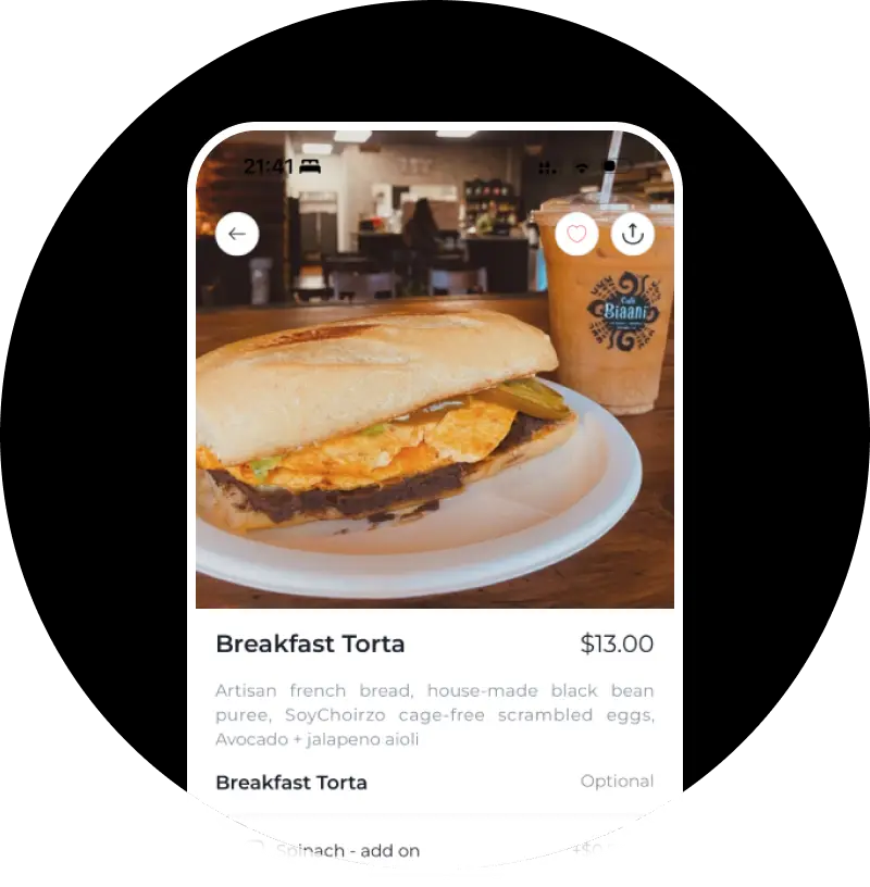 Cafe Biaani isn’t just about meals—it’s about bold, comforting bites that make you feel at home. With our app, you can order your favorite chilaquiles, burrito, torta, or tlayuda ahead of time, pair it with a coffee, tea, or matcha, pay effortlessly with Apple Pay, and earn rewards every time you visit. Bonus: breakfast and bold flavors are always on the menu.