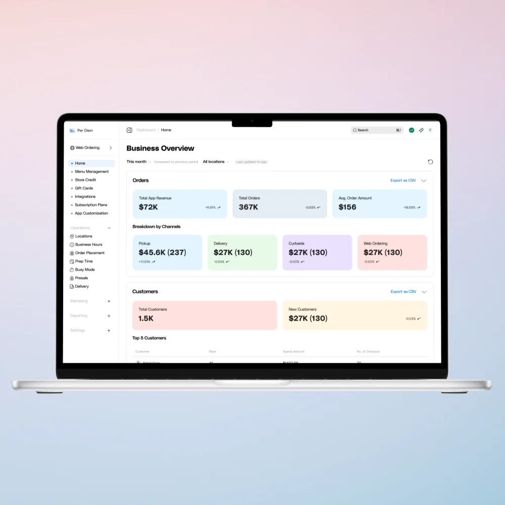 If your mornings are packed but afternoons lag, it might recommend running a short offer during the slowest period. If you’ve got loyal customers who haven’t visited this month, it can guide you to send them a special message. Beyond that, Per Diem includes an automation tool that lets you create your own promotions and set them on automation. You create the deal; the platform takes care of timing and push notifications.