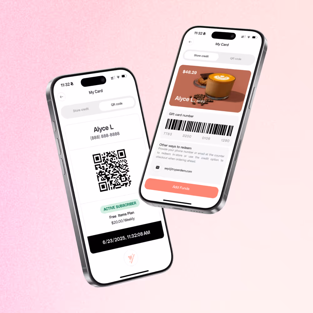 Per Diem offers this same functionality under the label of store credit. Customers can add funds inside the app, fund their balance using their preferred method, and use a built-in barcode to pay at the counter. The result is a more streamlined, touch-free transaction experience that works just as smoothly in a local café as it does in a multinational chain.