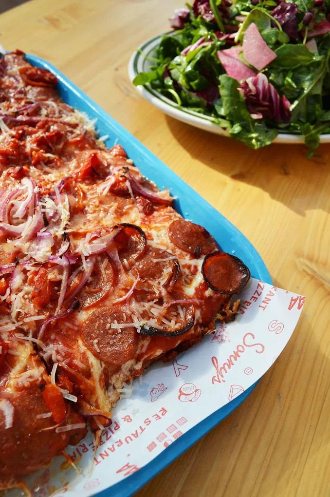 Sonny’s Pizza in the Park View area near Columbia Heights serves cheerful square slices and whole pies with vibrant toppings that draw a crowd. The dining room has a relaxed feel and the covered garden patio makes social meals enjoyable even when the weather changes. The pizza crust is crisp at the edges and the cheese melts evenly over fresh tomato sauce. A selection of classic Italian sides like meatballs and salads complements the pies on the menu. Beer, cider, natural wine, and simple cocktails pair well with every pizza choice. Staff move around with confidence and keep drinks and dishes arriving steadily. A speakeasy-style bar next door adds extra liveliness after dinner. Patio space accommodates gatherings without feeling crowded. The vibe is warm and lively with consistent quality.