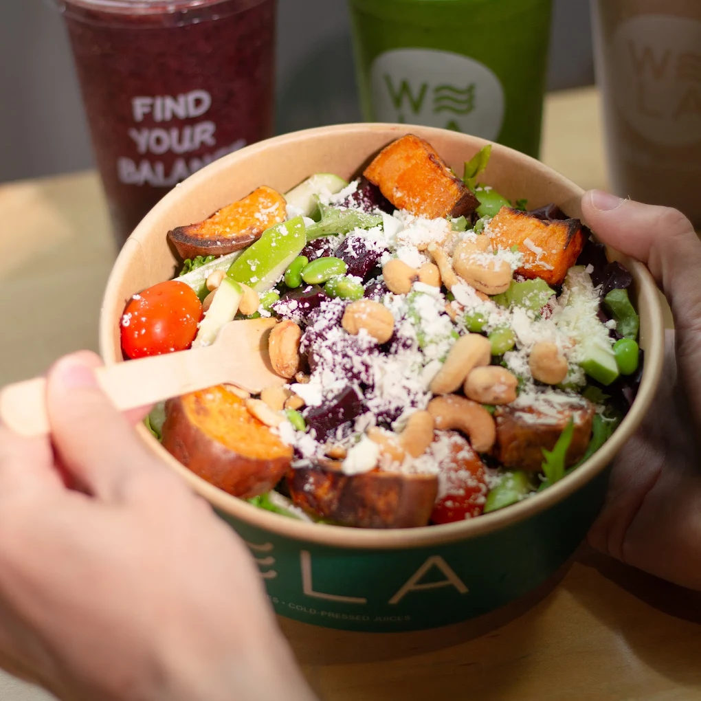 WELA Healthy Foods on Nelson Street has a clean, simple interior with a plant wall that adds a fresh touch. The menu balances creativity and nutrition with bowls, wraps, smoothies, and cold-pressed juices. You should try the Green Curry Bowl and the Roasted Beet & Feta Bowl. Both have bold, fresh flavors without feeling heavy. The smoothies taste like real fruit, and the cold-pressed juices have a crisp, refreshing quality that makes them easy to enjoy any time of day. The staff meet warmly and take time to answer questions or suggest options based on your preferences. You can see their dedication to both the food and the people enjoying it. WELA also participates in sustainability initiatives like Too Good To Go, reducing food waste in a meaningful way. The dining area has a quiet, relaxed atmosphere that makes it easy to focus on the meal or have a conversation. It works well for a quick lunch, a smoothie break, or a casual sit-down.