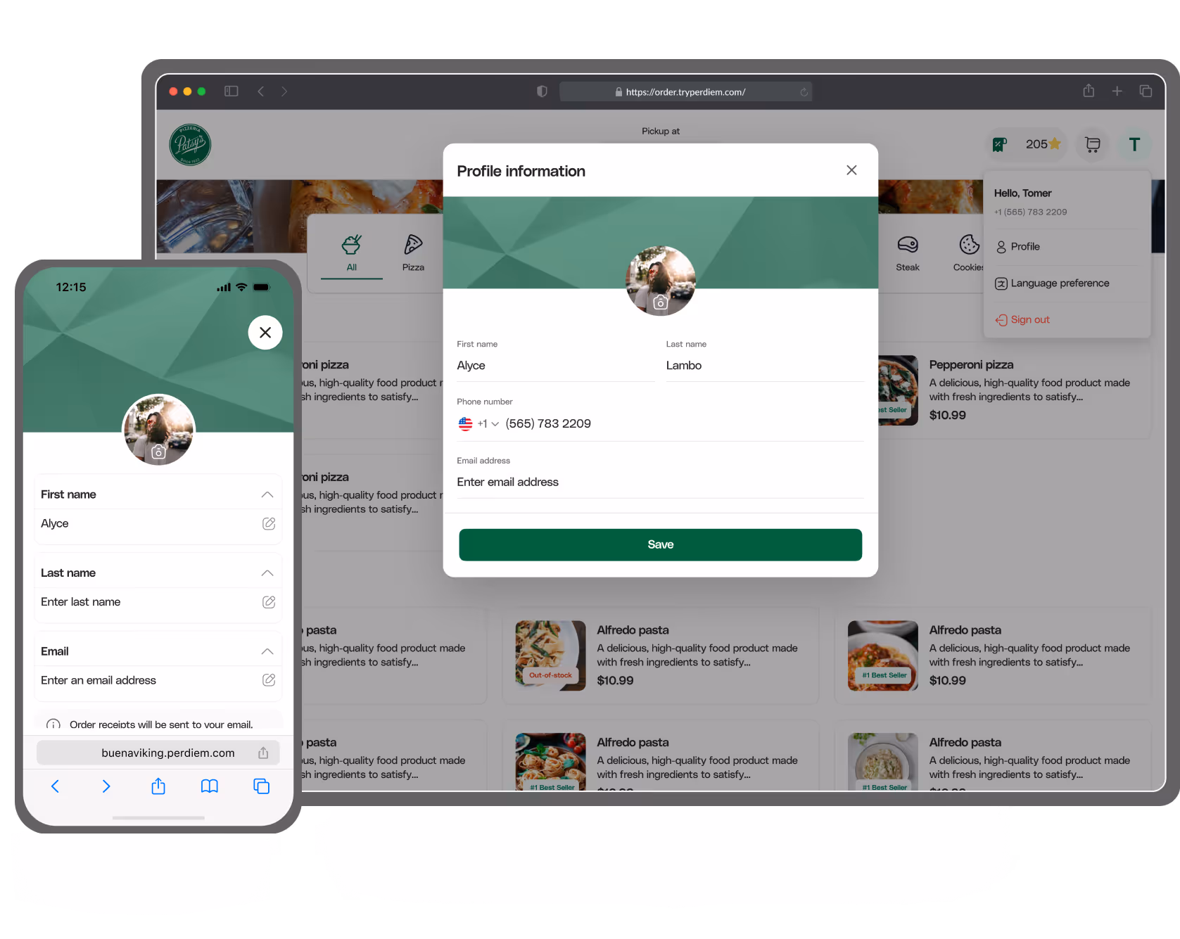 Bring your app or in-store rewards program to your website. Guests earn and redeem points just like they do at your counter.