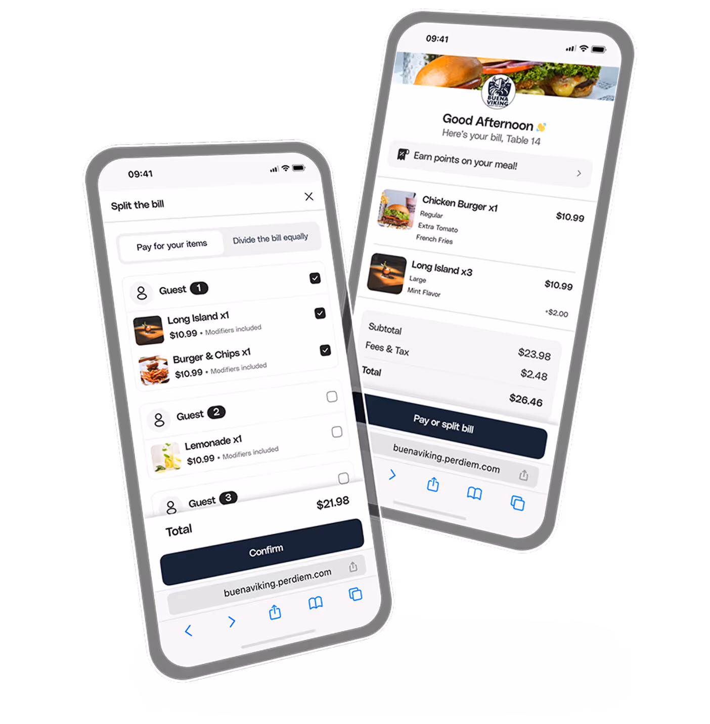 Split, tip, and pay from the table in seconds. Fully integrated with Square POS and branded to your restaurant.